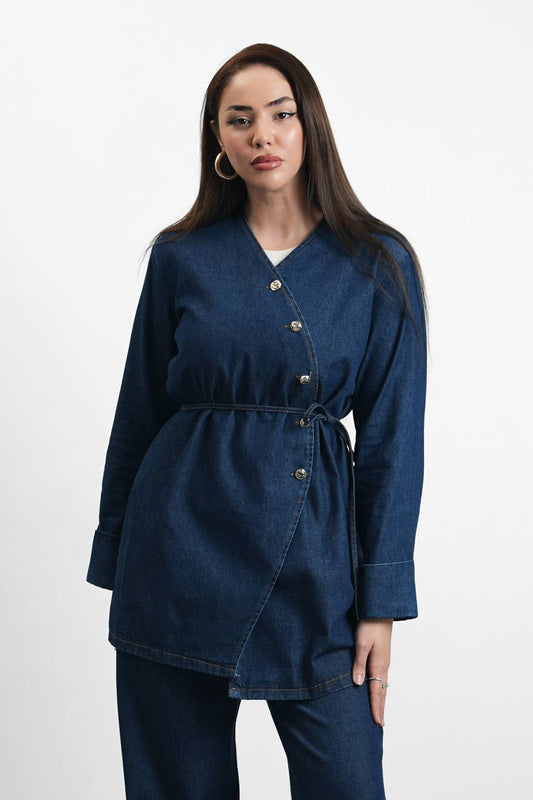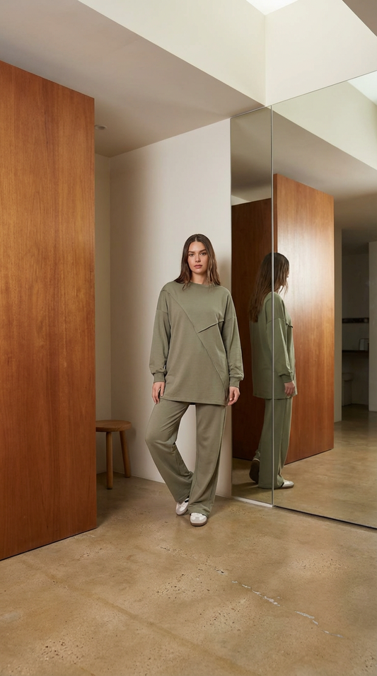 Olive Tie-Front Set with Wide Sleeves (Light Linen)