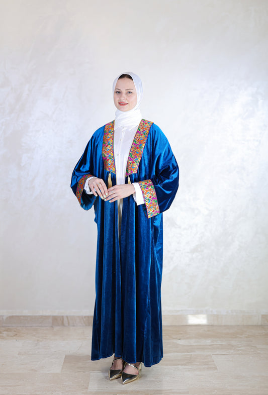 Luxury Zip-Up Velvet Abaya with Embroidery