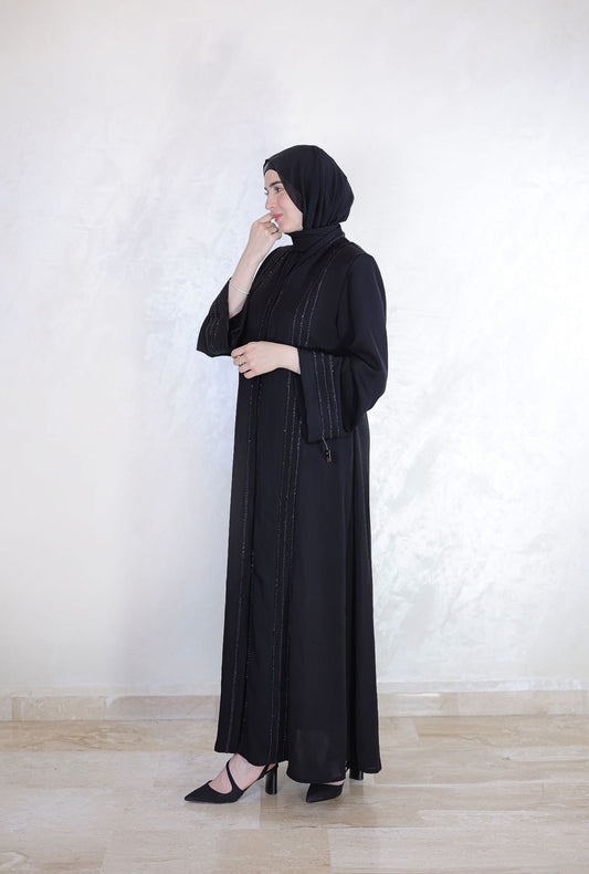 Elegant Sparkle Lines Zip-Up Abaya