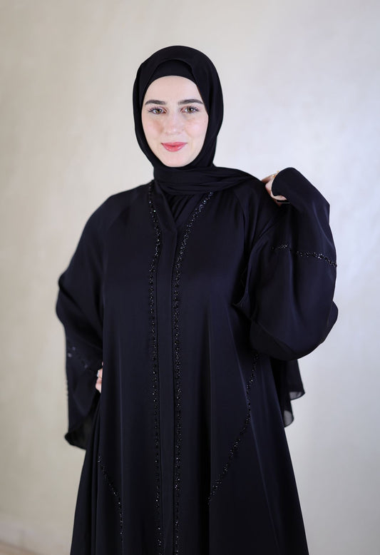 Midnight Grace Abaya With Subtle Strass Detailing - With Shal