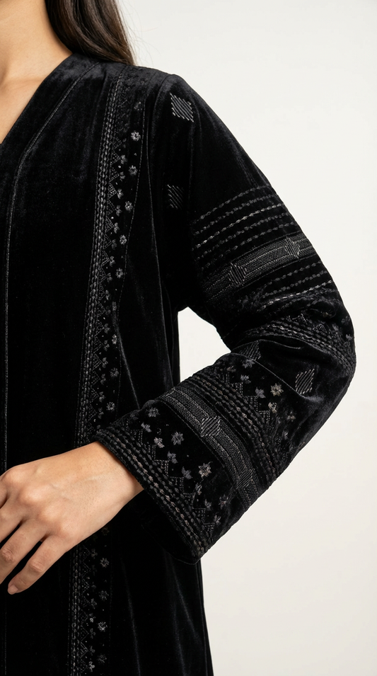 Luxury Zip-Up Velvet Abaya with Embroidery