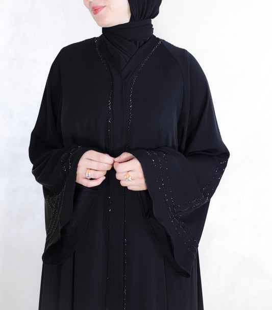 Midnight Grace Abaya With Subtle Strass Detailing - With Shal