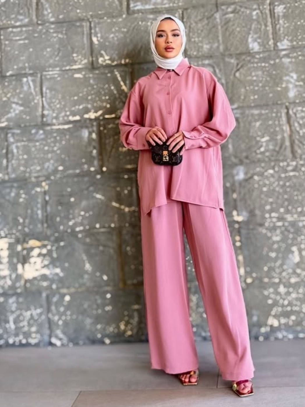 إطلالة ناعمة ومرتبة بأسلوب أنيق وعصري، مثالية للمشاوير اليومية أو الطلعات الكاجوال ،البساطة في التنسيق تعكس ذوق راقٍ وحضور ملفت.
