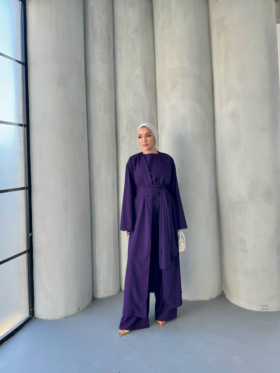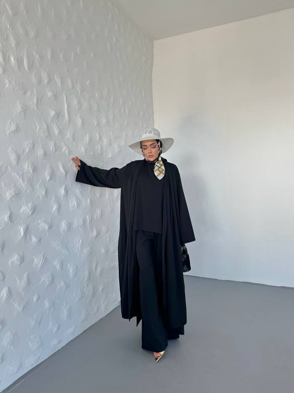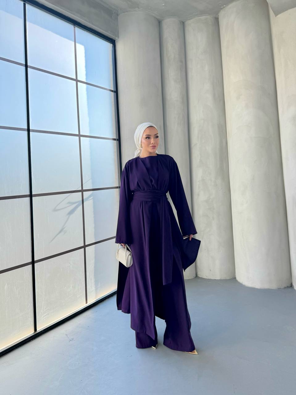 4-Piece Co-Ord Set | طقم كورد رسمي صيفي ٤ قطع بلوزة، بنطلون، عباية، وحزام