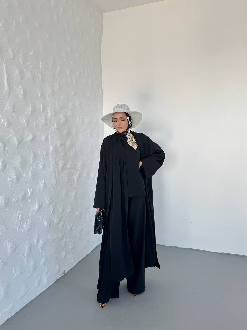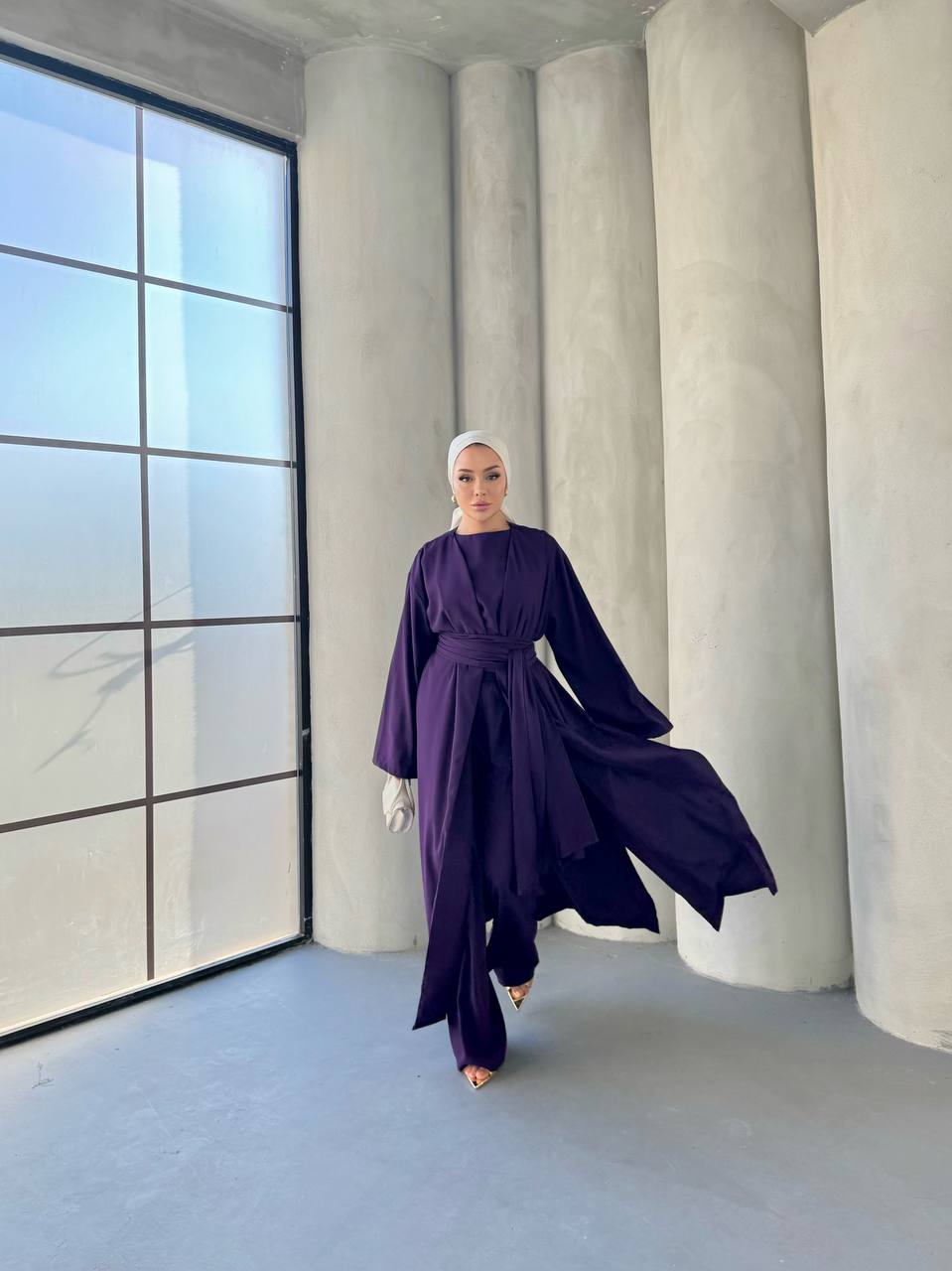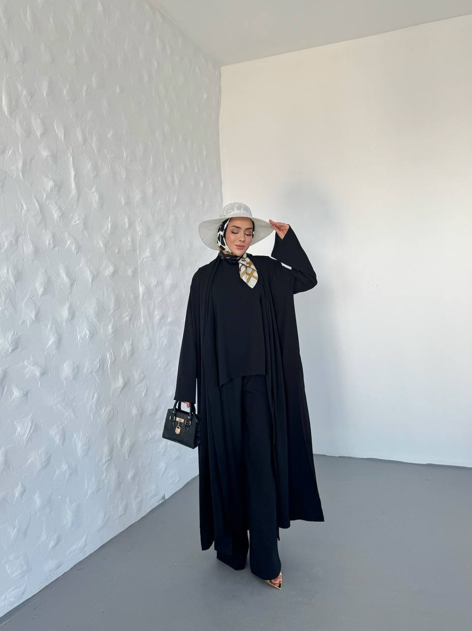 4-Piece Co-Ord Set | طقم كورد رسمي صيفي ٤ قطع بلوزة، بنطلون، عباية، وحزام