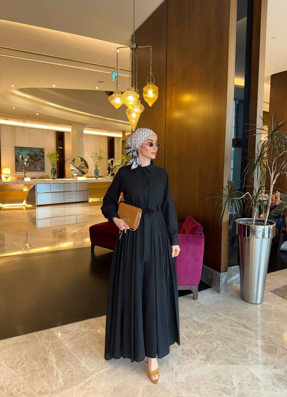 Elegant flared dress, fitted at the bust