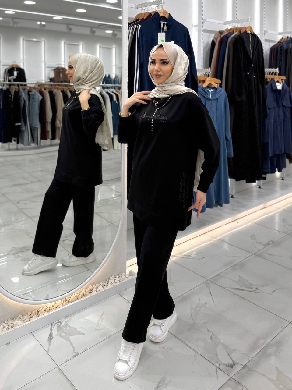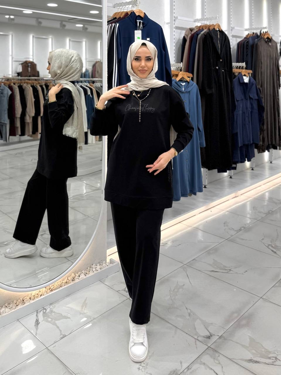 This two-piece set is made from a soft and comfortable cotton and polyester blend. It is easy to care for and safe to wash and dry. The pants feature an elastic waistband for a flexible and comfortable fit, and include practical side pockets for added convenience.